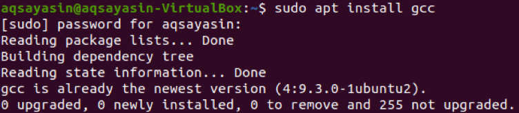 Type shows the data type to which the variable has been transformed. While the “value” is a variable to be translated to another type. At the start, we have to log in from the Linux operating system. In our case, we have been using Ubuntu 20.04 Linux system at the time of writing this guide. You have to just install some C language compiler on your system to compile the code. We have been using the “GCC” compiler in Ubuntu 20.04 Linux operating system. Try using the stated command in the shell to install it: