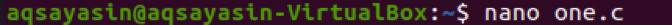 Press “Ctrl+S” to save the code. Now quit the file via the “Ctl+X” shortcut. Use the “GCC” compiler to compile the “one.c” C language file. No compilation error occurs, this indicates the correction of a code.