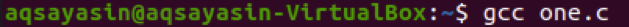 Now, you have to compile the code first. For that, try out the stated-below “gcc” query in the shell command terminal with the name of a file “one.c”. As the compilation command doesn’t show any error, this means our code is correct.