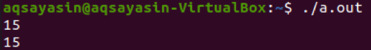 Execution of this file has been done using the “a.out” query in the shell and the output is showing the same values for both the variables and print statements separately.