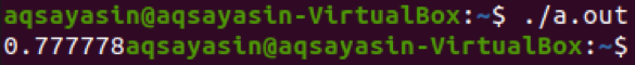 After the successful compilation of code, we executed the file using the “a.out” execution query, and found the below float resultant value for the variable “z”.